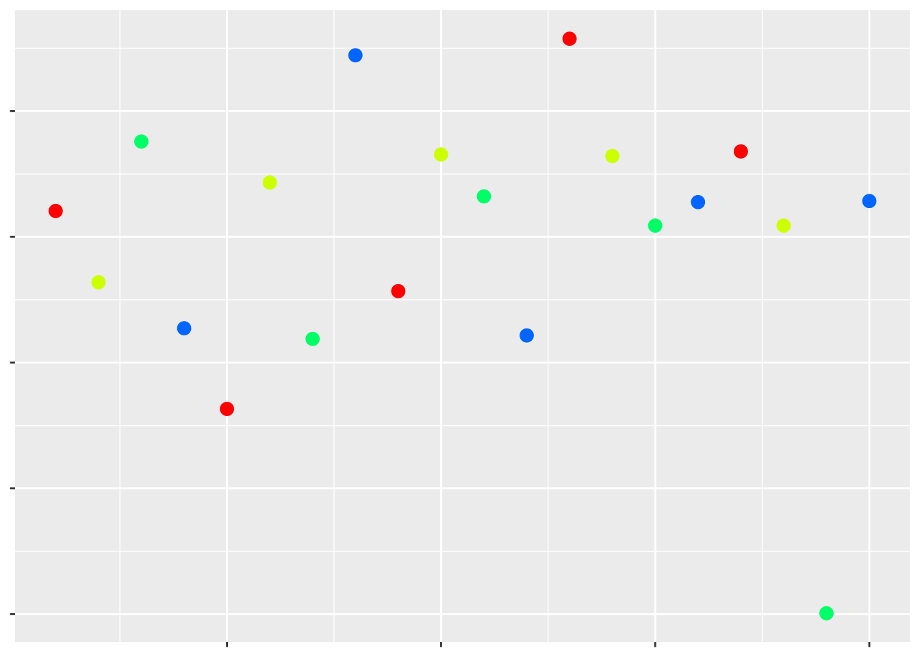 - Use unordered aesthetics (like hue or shape) to show unordered values