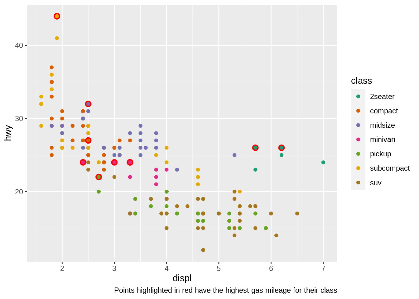 There’s one last way you can use color effectively in your plot, and that’s to highlight points with certain characteristics: