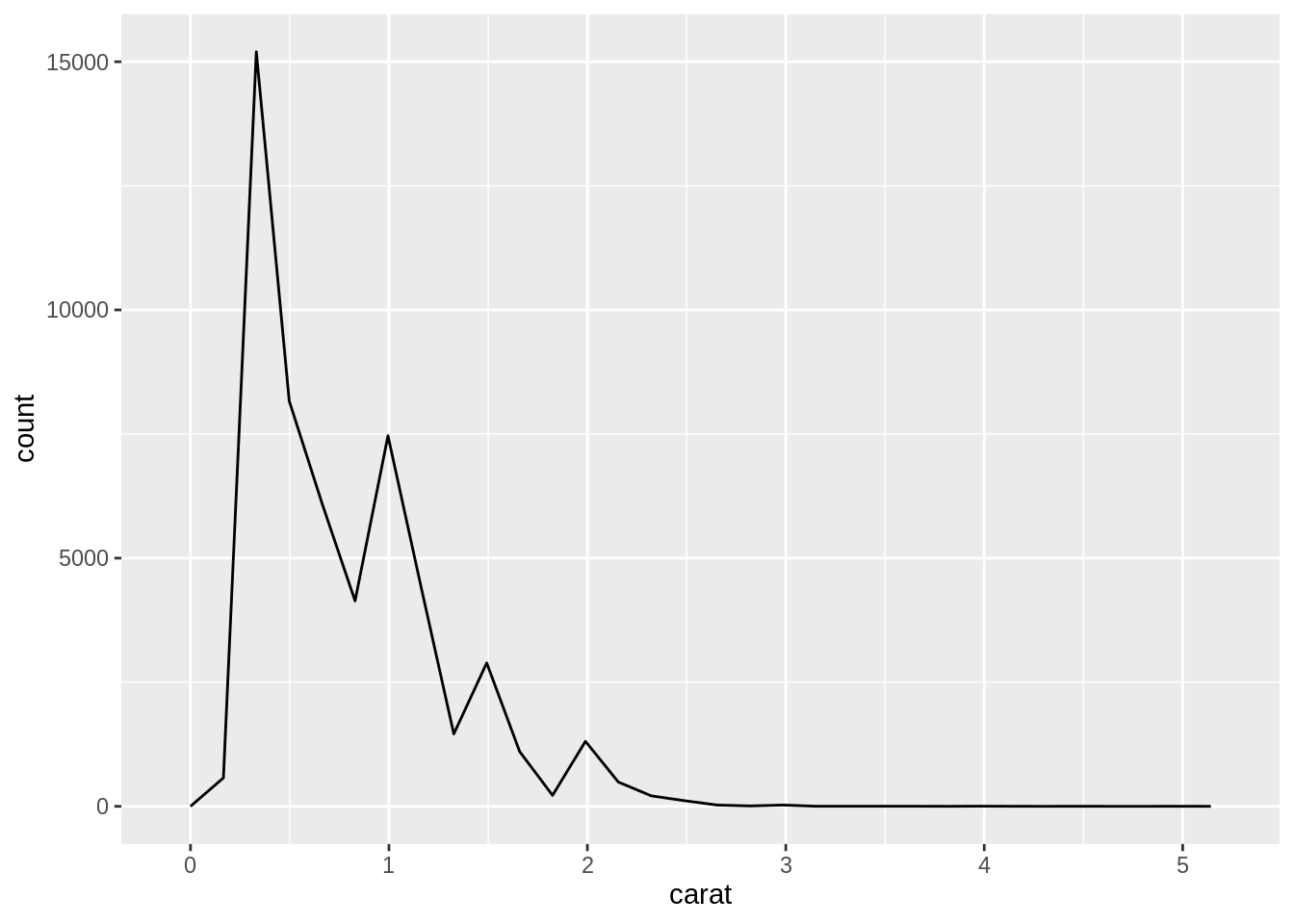 An alternative to the histogram is the frequency plot, which uses a line chart in the place of bars to represent the frequency of a value in your data set: