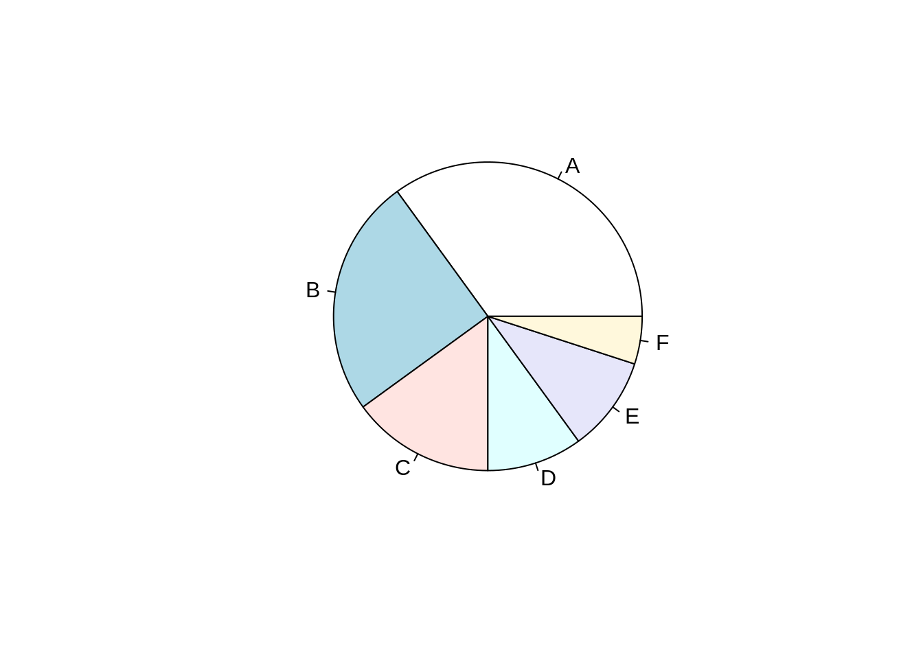 It’s a lot easier to tell that, say, A is smaller than C through F in the pie chart than the bar plot, since humans are better at summing angles than areas. In these instances, feel free to use a pie chart – and to tell anyone giving you flack that I said it was OK.